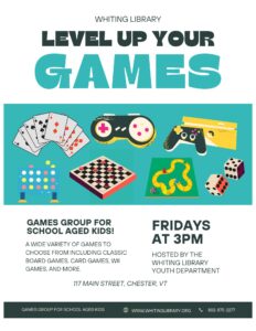Games are an essential component of the library. Information presented in new formats, that encourage critical thinking and problem solving, and games that encourage social interaction among peers are just a few of the reasons to consider joining the Whiting Library Game Group.